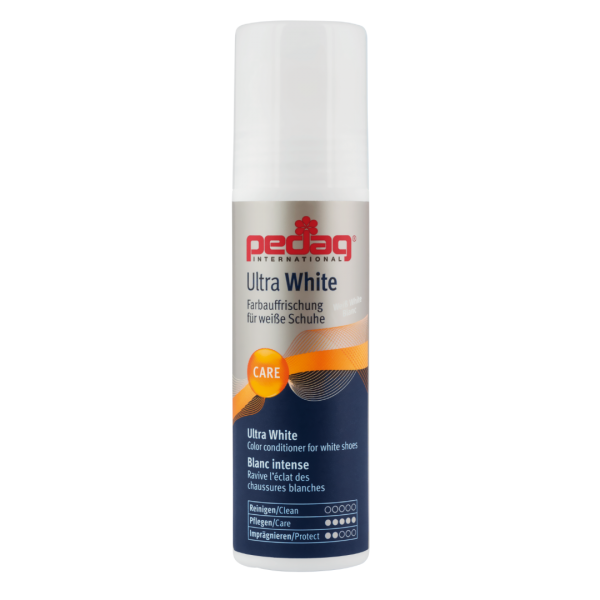 pedag Ultra White intensively refreshes the color of white leather, synthetics and textile shoes. Creates a brilliant white in an instant.