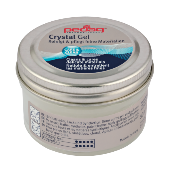 Clear the stage for pedag Crystal Gel, the powerful leather care gel for a shiny appearance. Cleans, cares for and preserves the beauty of shoes, boots, bags, etc.
